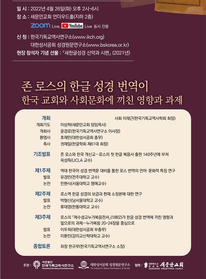 존 로스 한글 성경 번역 140주년 기념 학술 심포지엄 개최