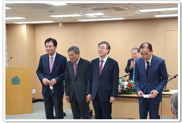신 임원 소개(왼쪽부터 부이사장 이정익 목사, 이사장 정하봉 목사, 서기 양병희 목사, 회계 김경원 목사)