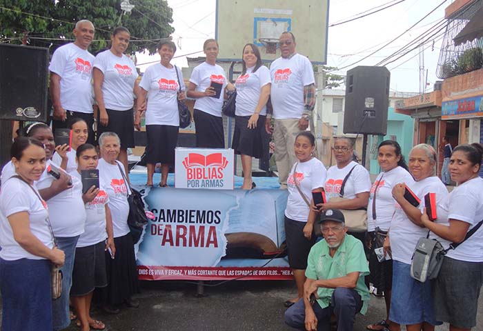 지속적으로 이어져 온 폭력과 그로 인한 범죄들 가운데 도미니카공화국성서공회는 하나님의 말씀으로 이 아픔을 치유하기를 소망하게 되었습니다. 그리고 사람들이 가진 무기를 성경으로 바꾸어 주는 사역을 시작하게 되었습니다. 사역은 수도인 산토도밍고를 중심으로 시작되었습니다. 사람들이 많이 모이는 장소에 단상을 설치하고 스피커를 통해 사역을 소개했습니다. 처음에는 긴장감이 감돌았지만 사람들이 서서히 모여들기 시작했습니다.