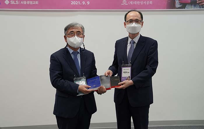 <성경증정(왼쪽부터 본 공회 권의현 사장, 서울광염교회 박현국 장로)>