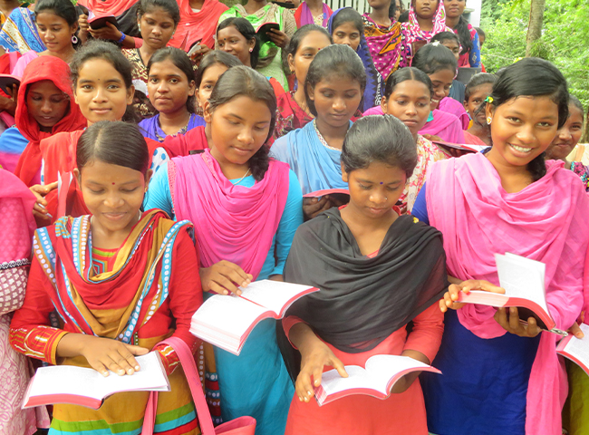 방글라데시성서공회는 지역 단체 및 고아원과 협력하여 어린이와 청소년들이 성경학교를 통해 그리스도인으로서 다른 사람들에게 살아있는 복음의 전파자가 되기를 교육하고 있습니다.