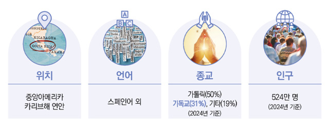 중앙아메리카 카리브해 연안에 위치한 코스타리카는 인구 약 500만 명의 작은 나라입니다. 코스타리카는 전통적으로 가톨릭 국가였으나, 최근 진행된 여론 조사에 따르면 몇 년간 기독교가 빠르게 성장하여 스스로를 ‘기독교인’이라 고백하는 사람들이 전체 인구의 약 31%에 이르렀습니다. 이는 약 162만 명에 해당합니다.(출처: UNA 코스타리카 국립대학교) 이는 중남미에서 가장 높은 수준으로, 특히 25세 이하의 젊은 층에서 빠르게 복음화가 이루어지고 있습니다.