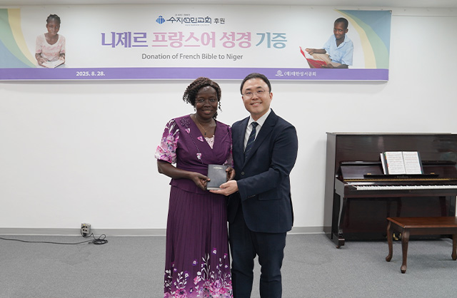 2025년 8월 28일, 본 공회(이사장 이선균 목사)에서는 수지선민교회(이건표 목사)의 후원으로 니제르에 <프랑스어 성경> 1,550부를 보내는 기증 예식을 가졌습니다.