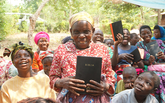 [성경을 들고 기뻐하는 우간다 카세세(Kasese) 농촌 마을 성도]