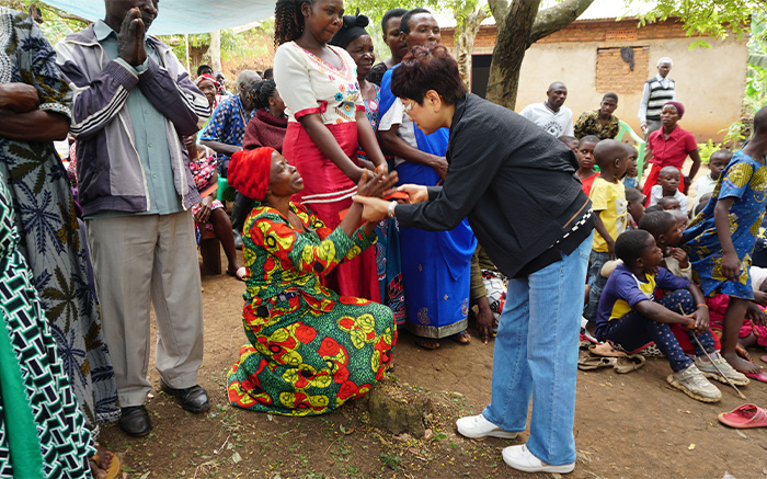 처음 도착한 곳은 우간다. 우간다는 인구 대다수가 기독교인이지만 수십 년간 지속된 내전으로 나라 곳곳에 상처가 만연하고, 경제적인 어려움으로 생활고에 허덕여 자신의 힘으로는 성경을 구할 수 없는 이들이 많습니다. 성경 보급팀은 대규모 차 재배 농장이 있는 포트포털(Fort Portal)과 카세세(Kasese) 지역 농촌 마을에 방문하여 성경을 무료로 보급하였습니다. 성경을 한 권 한 권 나눠주는 순간, 우간다 사람들은 존경과 감사의 의미로 무릎을 꿇으며 성경을 받고 환호했습니다. 이 모습을 본 김영례 권사의 눈시울이 붉어졌습니다.