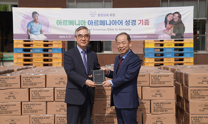 2024년 4월 17일, 본 공회(이사장 김순권 목사)에서는 충현교회(한규삼 목사)의 후원으로 아르메니아에 <아르메니아어 성경> 1,520부를 보내는 기증 예식을 가졌습니다.