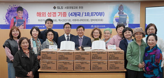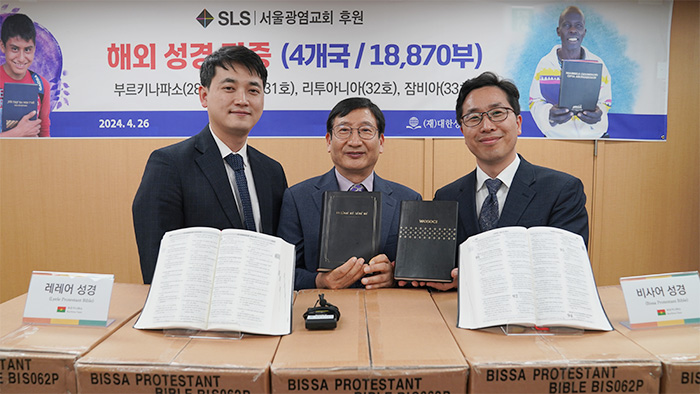 2024년 4월 26일, 본 공회(이사장 김순권 목사)에서는 서울광염교회(조현삼 목사)의 후원으로 해외 4개국에 성경 18,870부를 보내는 기증 예식을 가졌습니다.(부르키나파소-비사어 성경, 레레어 성경 6,000부, 멕시코-촐어 성경 3,500부, 리투아니아-리투아니아어 성경 1,270부, 잠비아-통가 잠비아어 성경, 영어 성경 8,100부)