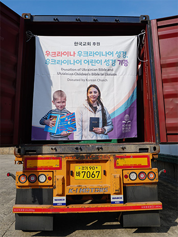 2025년 8월 1일(예정), 대한성서공회(이사장 이선균 목사) 반포센터(경기도 용인시 소재)에서 한국교회의 후원으로 <우크라이나어 성경> 1천 5백 2십 부와 <우크라이나어 어린이 성경> 8천 7백 부를 우크라이나 사람들에게 발송했습니다. 발송된 성경은 우크라이나 전쟁 피해 지역에 있는 사람들에게 전해질 예정이며, 특히 전쟁 가운데서 큰 불안과 고통을 겪고 있는 어린이들에게 전달될 예정입니다.