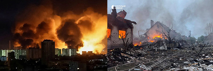 <5월과 6월 미사일 폭격을 받은 수도 키이우(Kyiv) 근방 마을들의 모습>