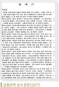 「공동번역 성서」(1977)의 번역 원칙은 내용 동등성을 추구하고 형식 일치를 피하는 것이었고, 번역 지침은 교회 밖의 사람들을 위한 용어로 번역하고 신교나 구교 어느 편의 익숙한 표현은 고집하지 않는다는 것이었다. 1971년 4월 「공동번역 신약전서」가, 1977년 4월 「공동번역 성서」가 출간되었다.