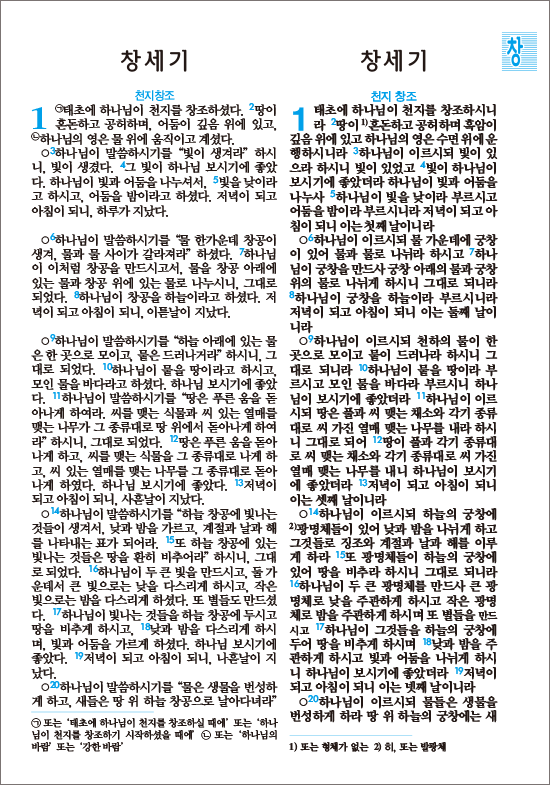 폰트크기 : 개정9.5pt, 새번역 9.3pt